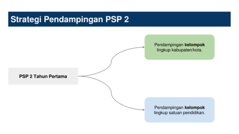 Strategi Pendampingan PSP 2 Pendampingan kelompok lingkup kabupaten/kota. PSP 2 Tahun Pertama Pendampingan kelompok lingkup satuan pendidikan.