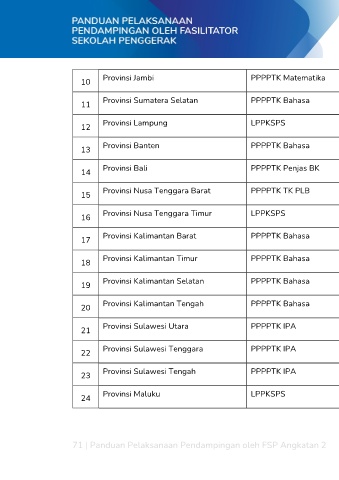 71 | Panduan Pelaksanaan Pendampingan oleh FSP Angkatan 2